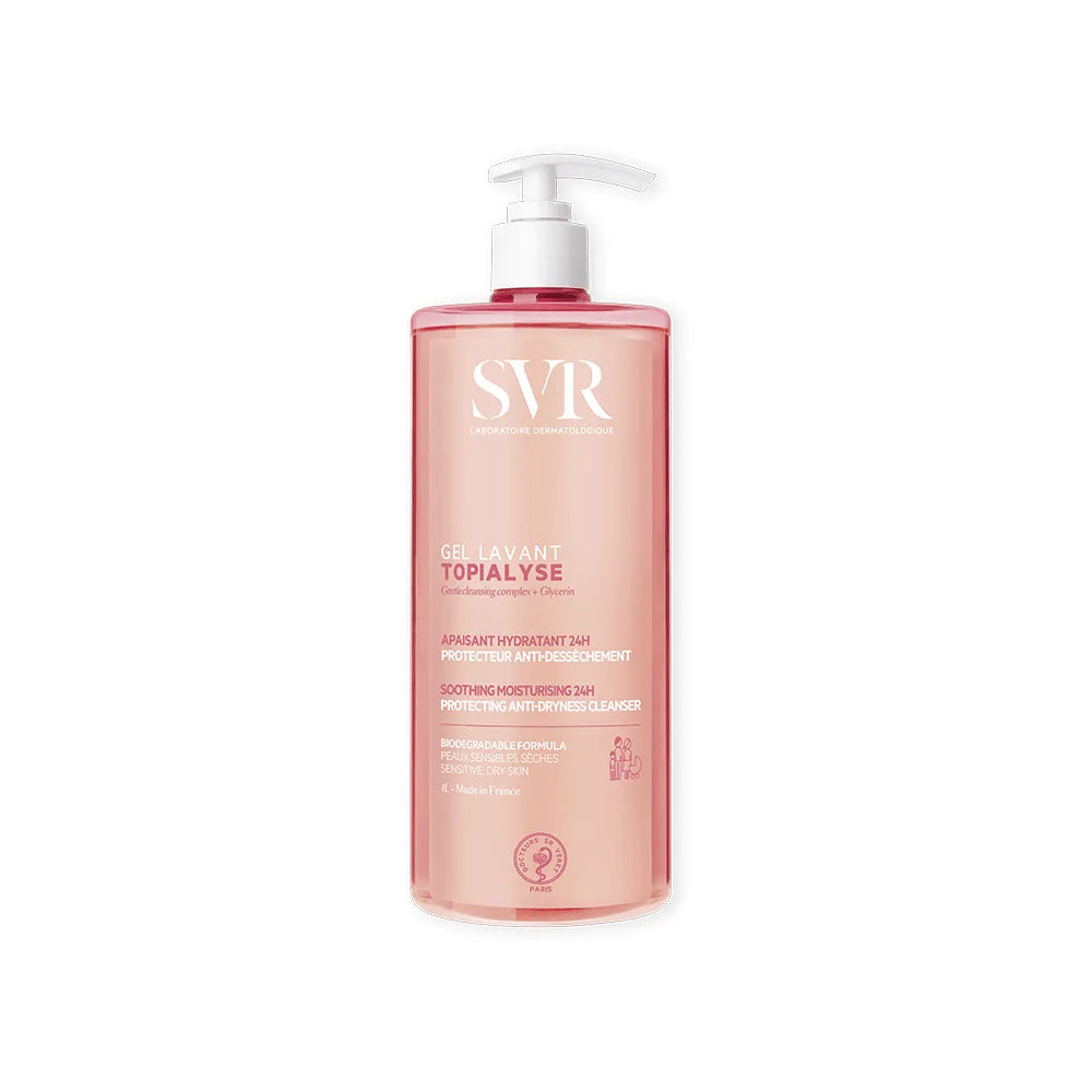 Gracias a su complejo limpiador ultrasuave sin jabón, TOPIALYSE GEL LAVANT restaura y protege la barrera cutánea: Tres tensioactivos suaves y con Buena tolerancia: forman una espuma cremosa que elimina suavemente las impurezas al tiempo que reduce la irritación y la sequedad. Glicerina vegetal: hidratante esencial que retiene su peso en agua y permite una hidratación óptima de la piel manteniendo la barrera cutánea.
