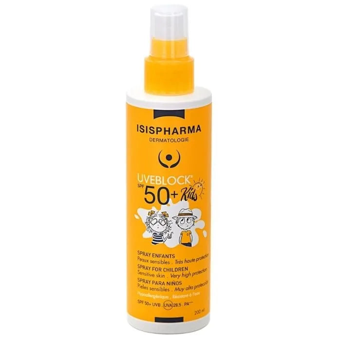 El Uveblock SPF50+ Spray Kids es resistente al agua y se aplica de manera uniforme, garantizando una cobertura completa incluso en las áreas difíciles de alcanzar. Su fórmula suave y sin lágrimas es ideal para la piel sensible de los niños, asegurando una protección solar sin molestias.